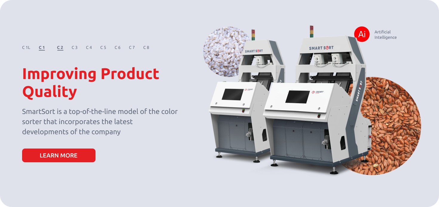 In 2024, CSort released the fifth-generation of color sorters SmartSort - C-series. It is a top-of-the-line model of the color sorter that incorporates the latest developments of the company including AI Technology and SMART mode (Deep learnig).